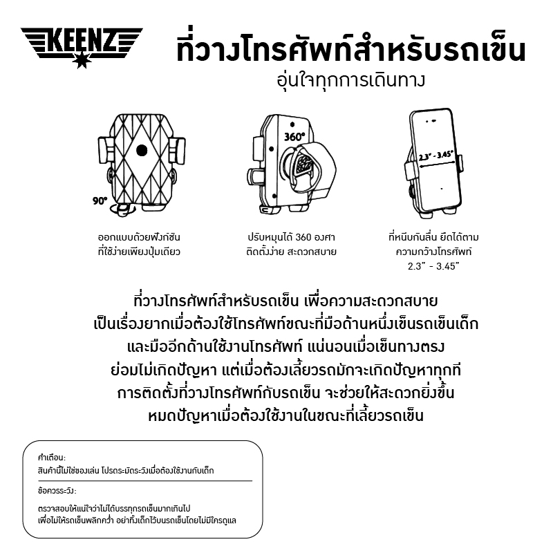 Keenz Phone Holder ✅ สามารถปรับตัวยึดให้เข้ากับขนาดด้ามจับ ขนาด 2.3 - 3.45 ✅ ปรับหมุนได้ 360 องศา ✅ ติดตั้งและเคลื่อนย้ายได้ง่าย ✅ ยึดเกาะแน่น แข็งแรงมากๆ ✅ รองรับมือถือทุกรุ่น ✅ ใช้งานง่ายมาก ✅ ที่วางโทรศัพท์สำหรับรถเข็น เพื่อความสะดวกสบาย